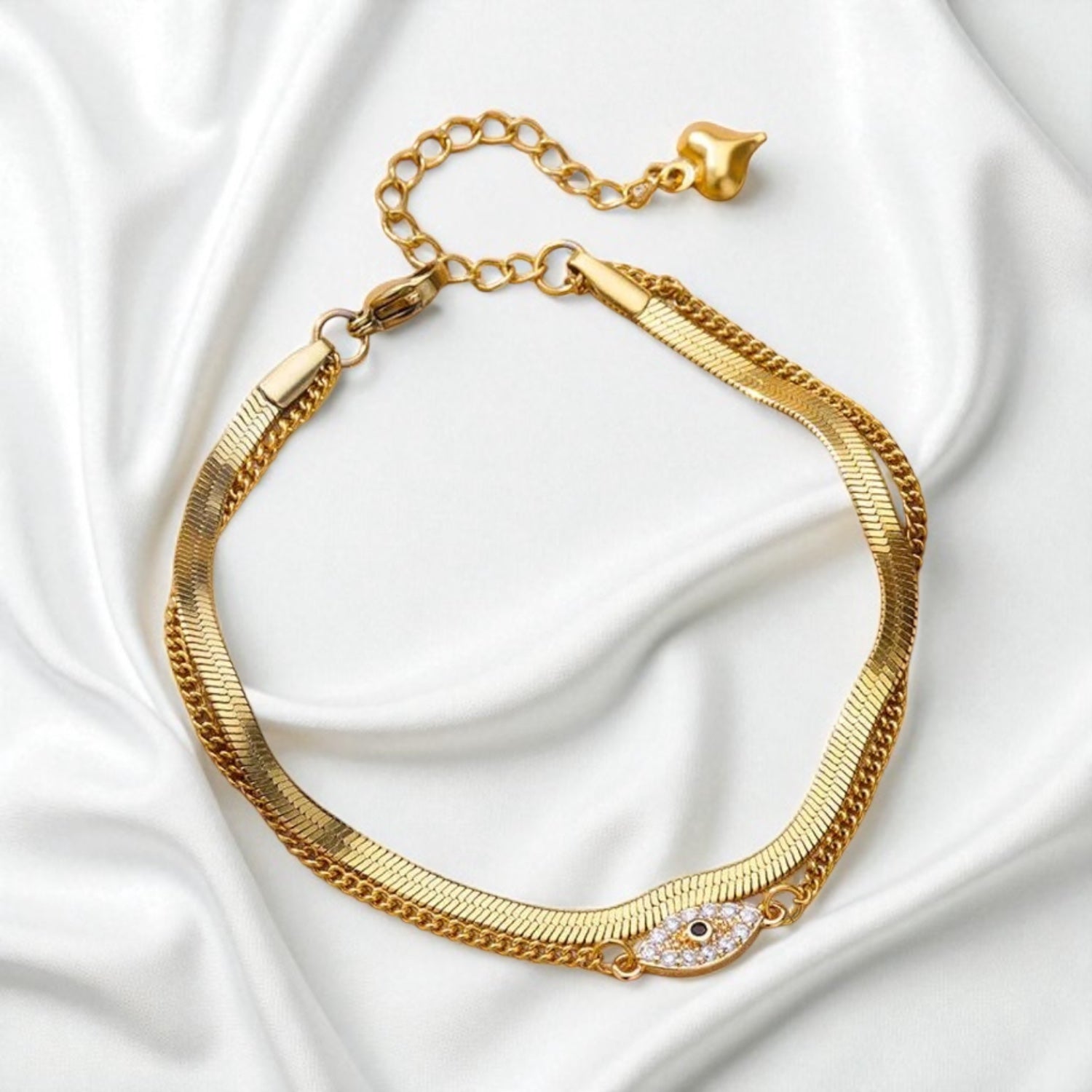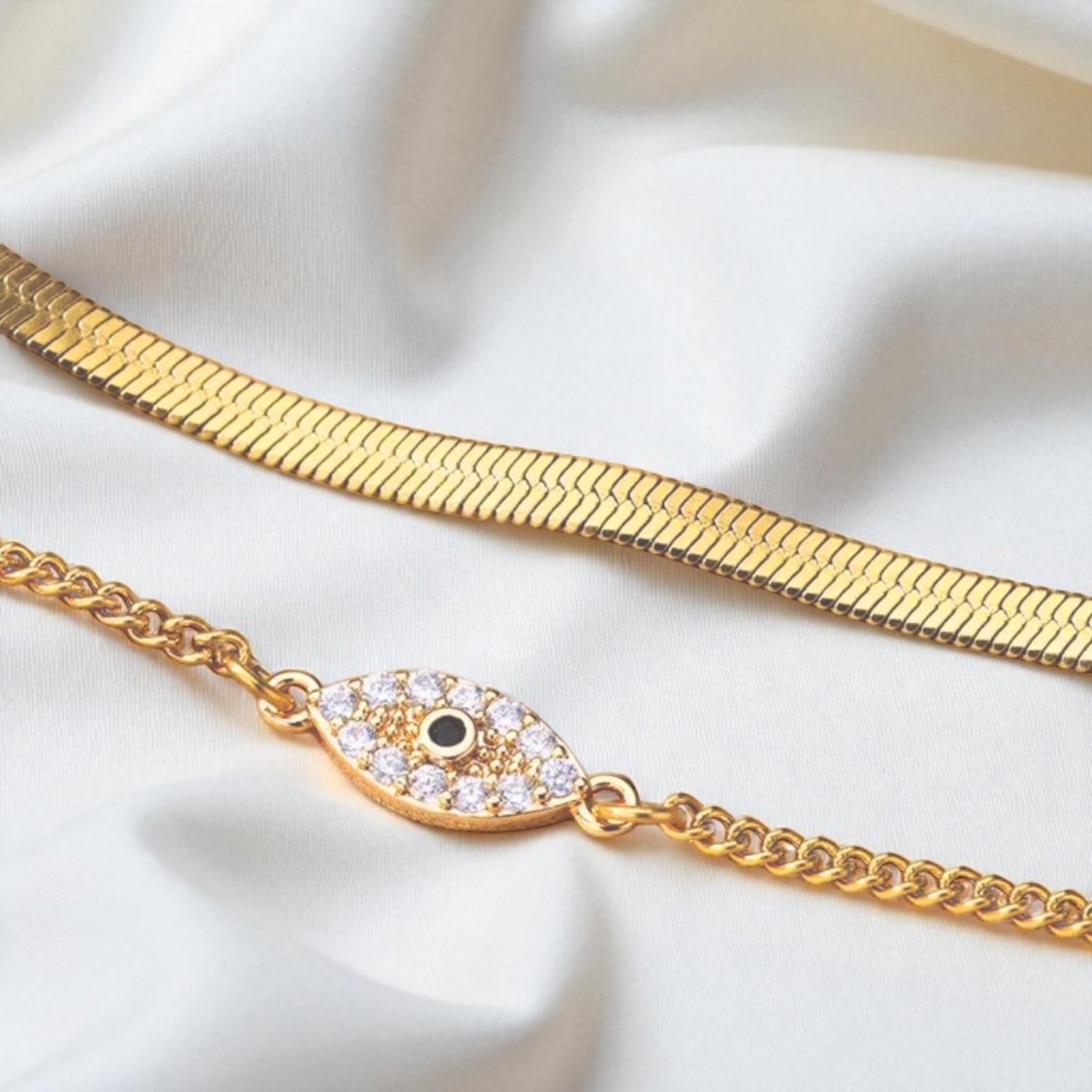 Introducing our Evil Eye Cubic Zircon Anklet – a harmonious blend of style and spirituality. The Evil Eye, an ancient symbol of protection, shields from negative energies, making this anklet a wearable guardian of positivity.