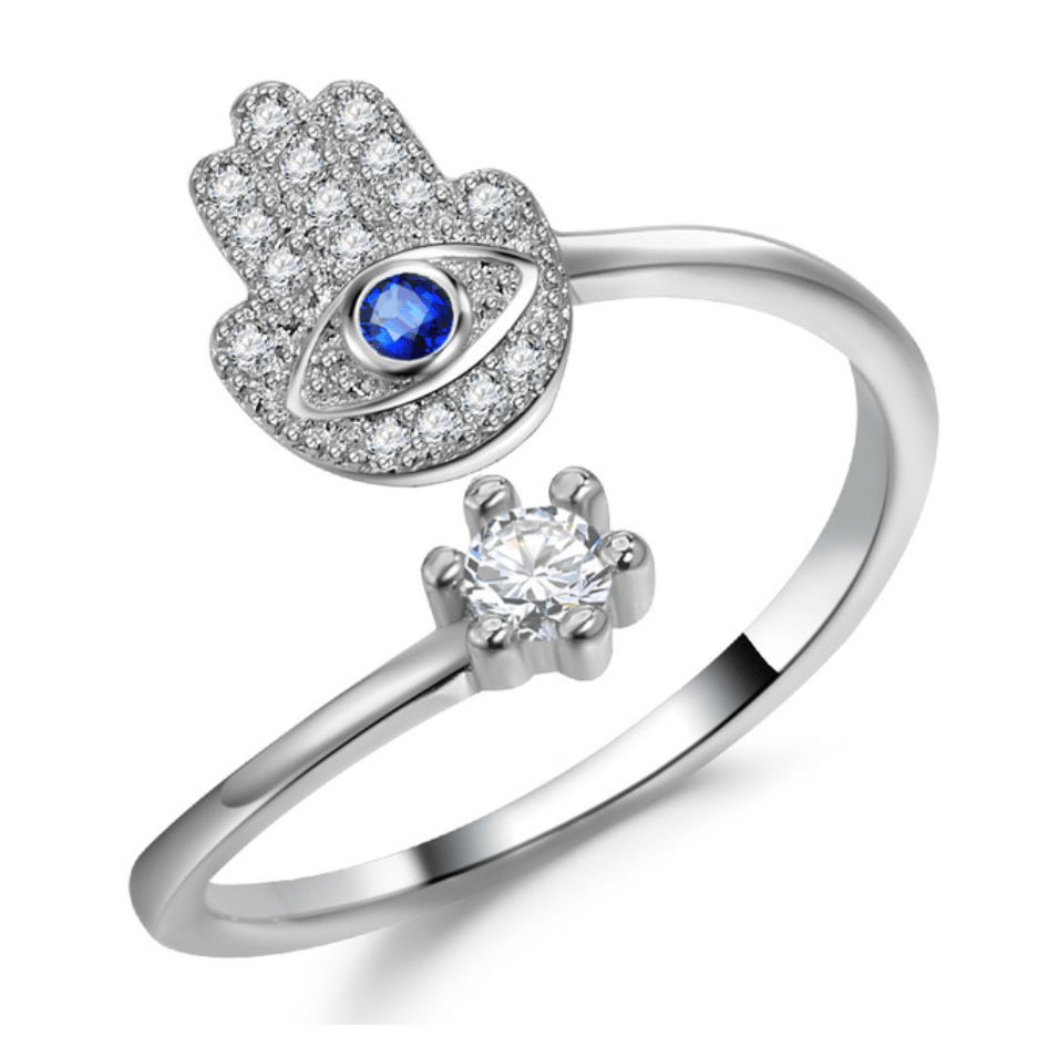 The Hamsa Hand symbolizes protection, good fortune, and blessings, making it a meaningful addition to your jewelry collection. The cubic zirconia stones add a touch of sparkle to this already beautiful piece, making it the perfect gift for yourself or someone special. Order now and enjoy the beauty and meaning of this stunning Hamsa Hand ring.
