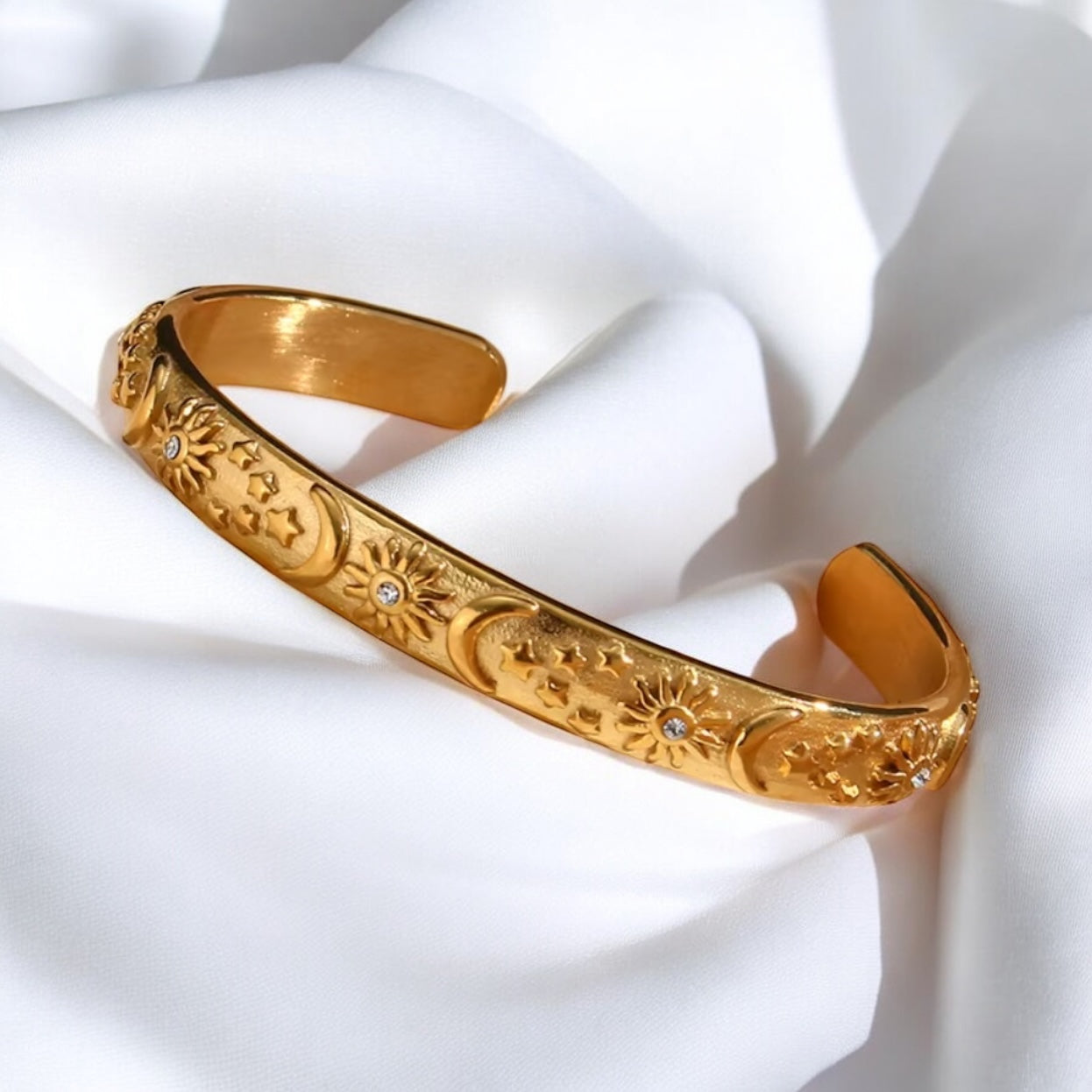 Celestial Goddess Bangle – Sun, Moon & Stars Bracelet 🌙☀️✨