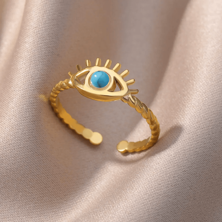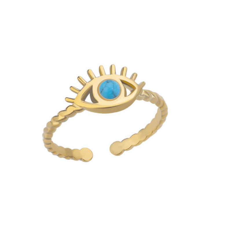 Discover our exquisite Evil Eye Ring with Turquoise Crystal - now tarnish-free for lasting brilliance. Feel protected with its captivating evil eye symbol and soothing turquoise crystal. Adjustable to fit all sizes, this timeless piece brings elegance and positive energy to your style. Embrace protection and beauty in one enchanting ring.