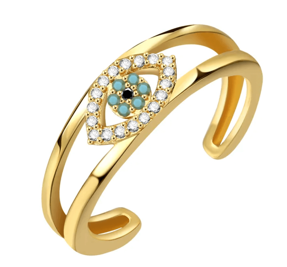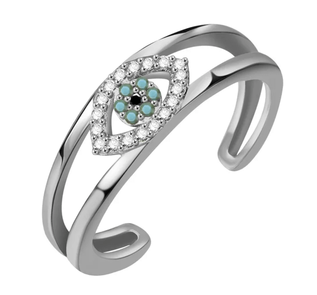 The Evil Eye Symbol is known to ward off negative energy and protect its wearer from harm. Our high-quality ring is perfect for those seeking both style and protection. With its eye-catching design, this ring is a must-have addition to any jewelry collection.