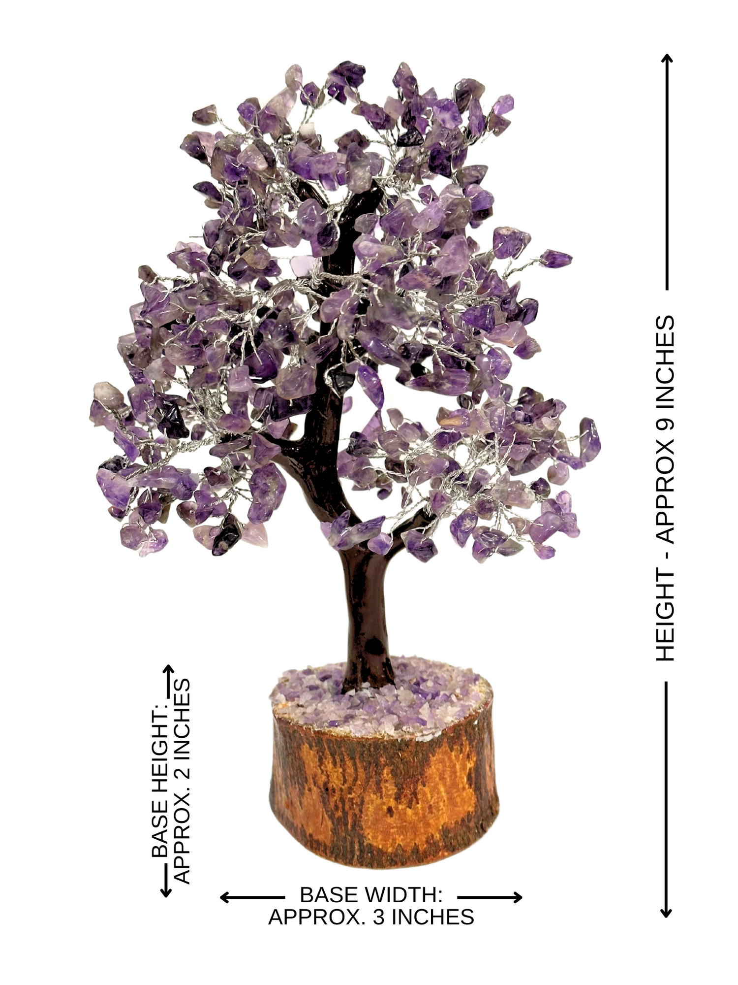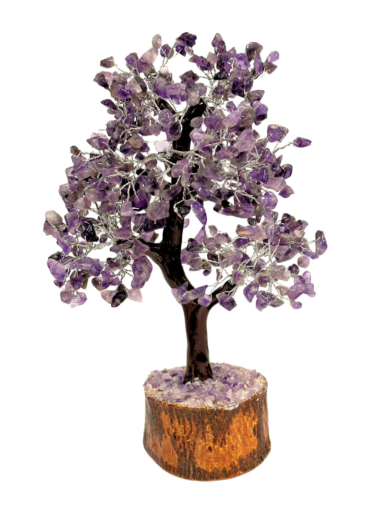 Introducing our enchanting Feng Shui Amethyst Crystal Tree - a stunning adornment that brings tranquility and elegance to any space. Crafted with care, each tree boasts 500 delicate amethyst chips intricately woven into its branches, creating a mesmerizing display of purple hues.