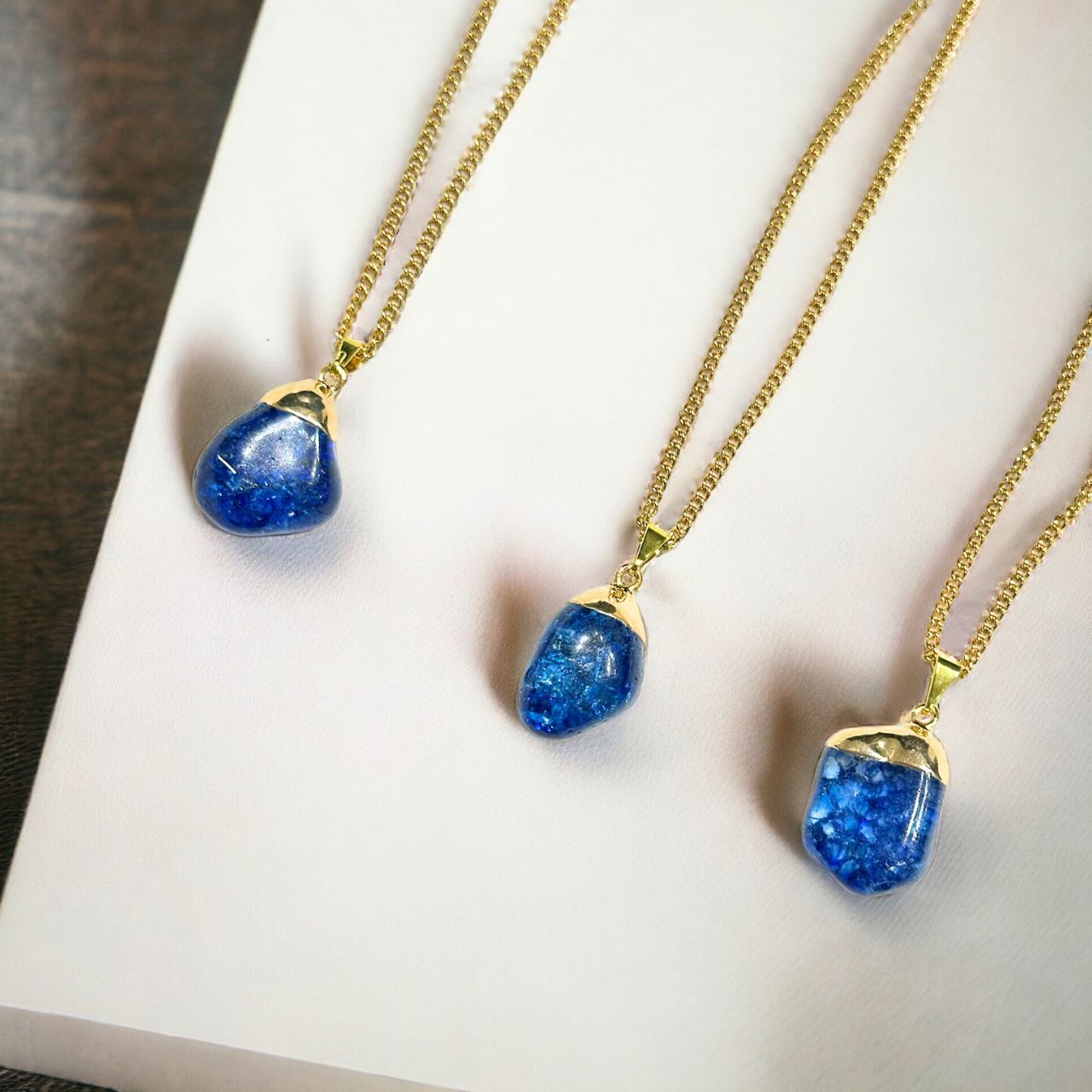 Wearing Blue Crackle Quartz as a necklace enhances communication, promotes serenity, and stimulates self-expression. It aids in clarity of thought, repels negativity, and fosters a sense of calm, elevating overall well-being.