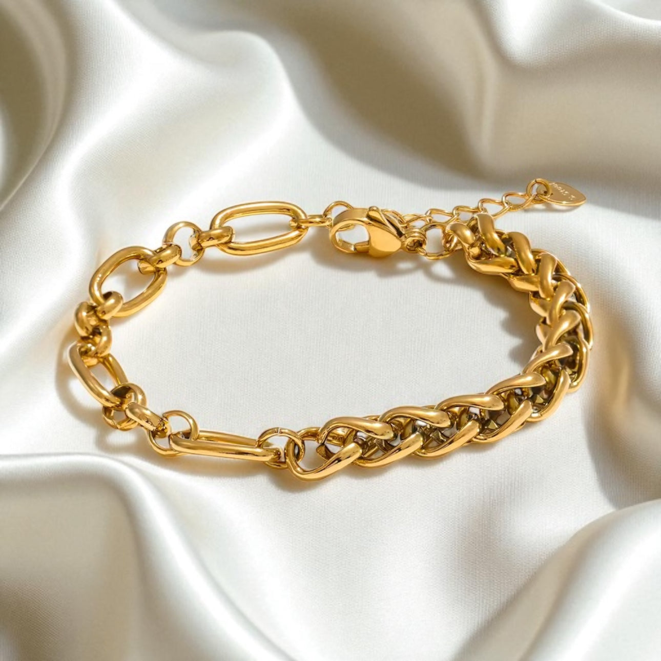 Elevate your everyday look with our Statement Bracelet, designed to stand out while withstanding the test of time. Crafted with 18K PVD gold over durable stainless steel, this piece combines bold elegance with practical luxury.