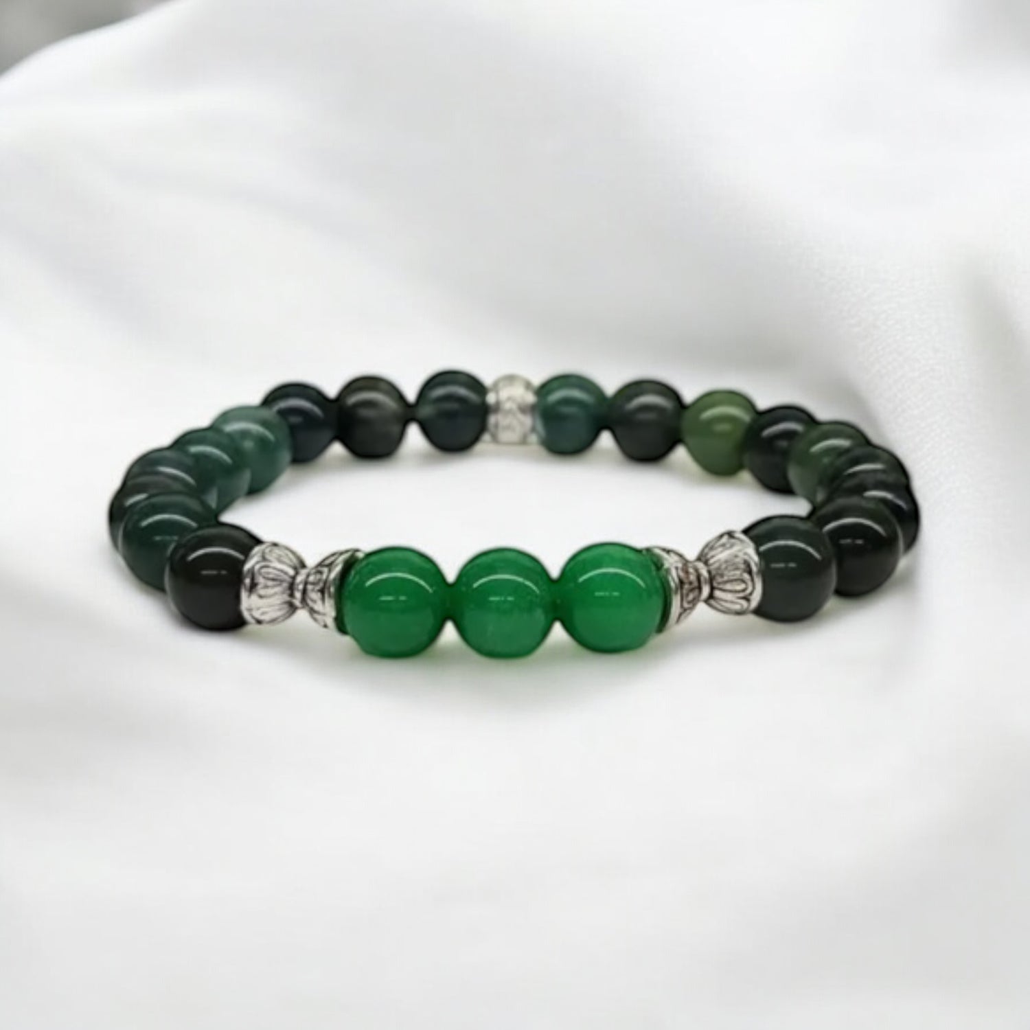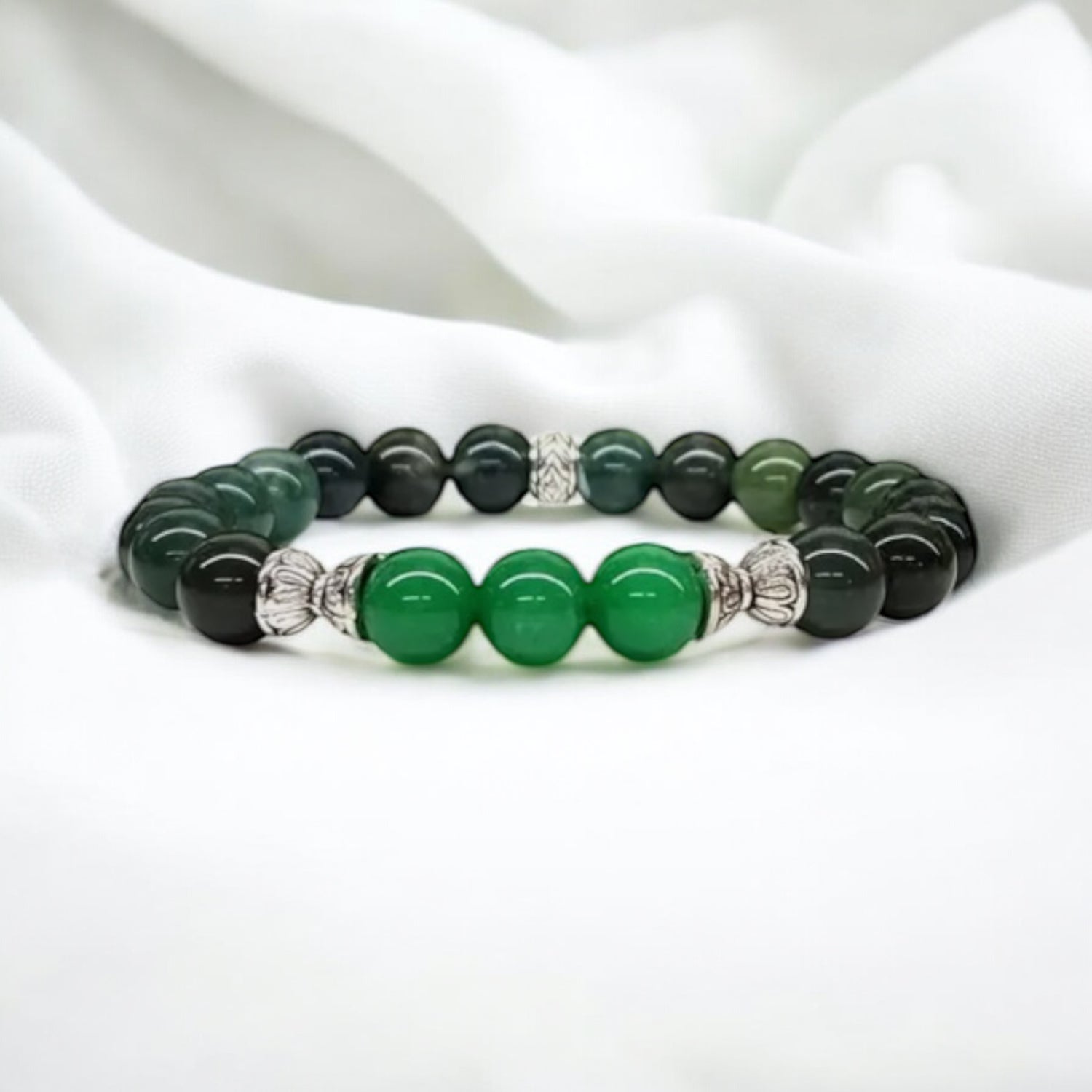 Manifesting Millions Crystal Bracelet – Green Jade & Moss Agate (8mm)