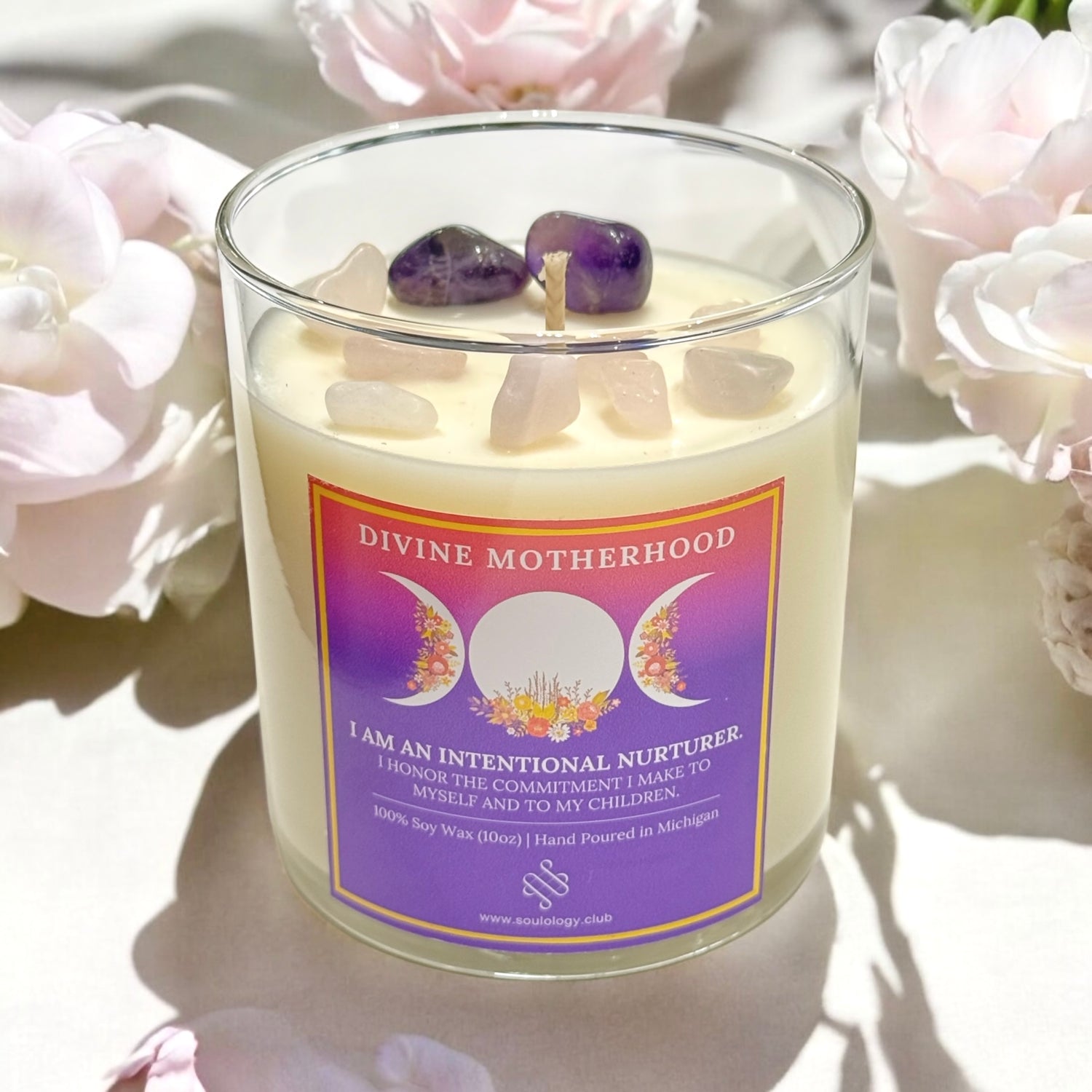 The Divine Motherhood Candle is a sacred tribute to the power of creation, unconditional love, and intuitive wisdom. Whether you're a mother, nurturing soul, or someone embracing your feminine energy, this candle offers comfort, healing, and strength.