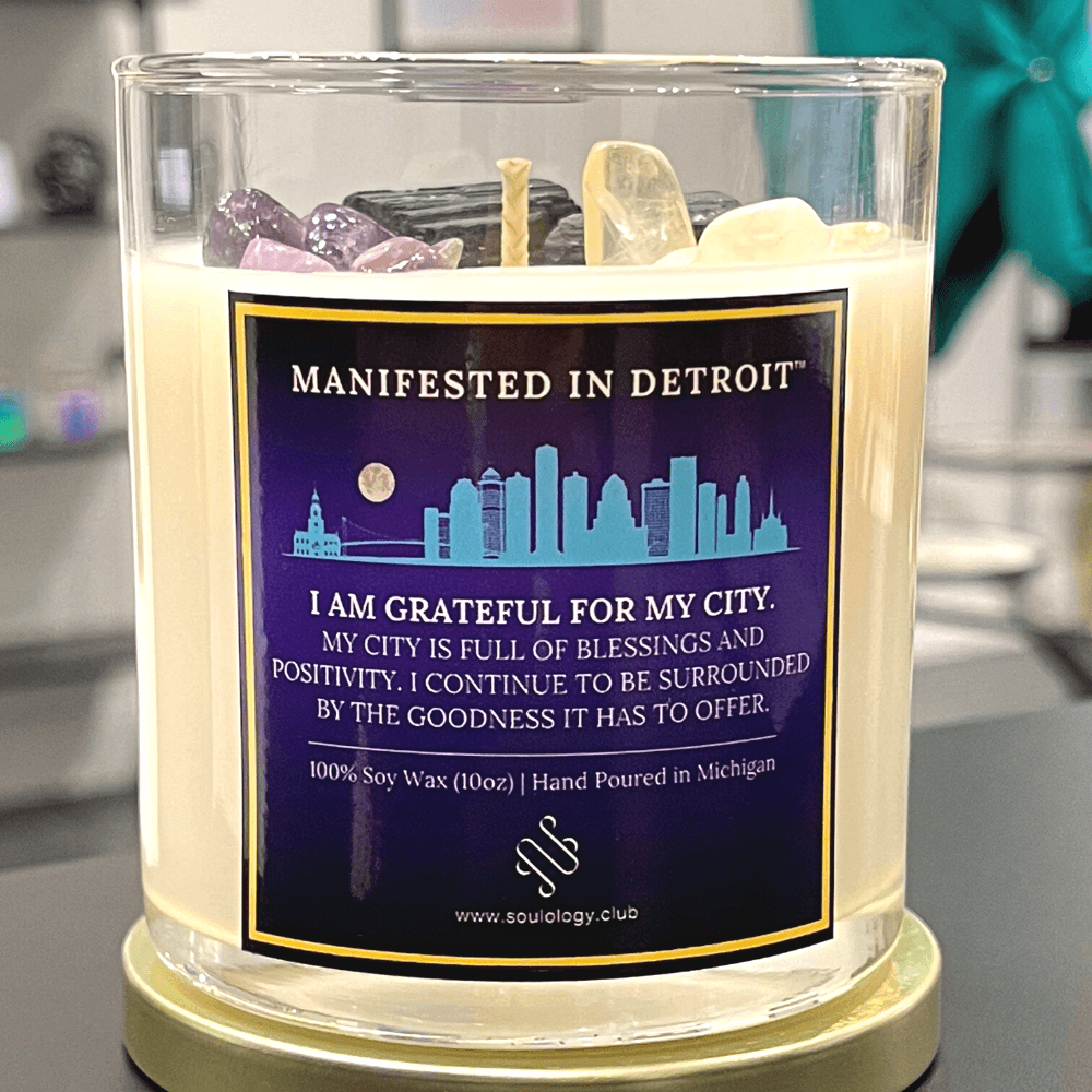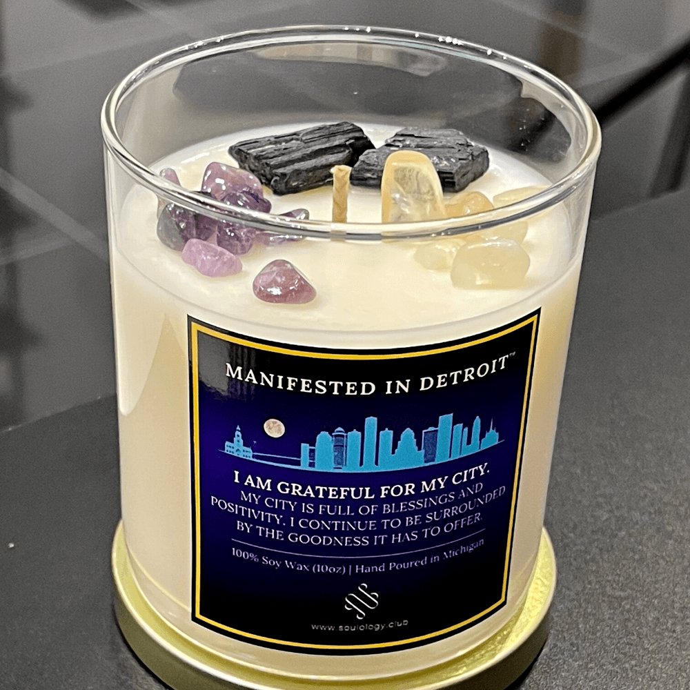 Our Manifested in Detroit Candle is more than just a candle—it's a manifestation tool, an embodiment of your city's spirit, and a daily reminder to be grateful for all that you are and all that you have in the vibrant city of Detroit.
