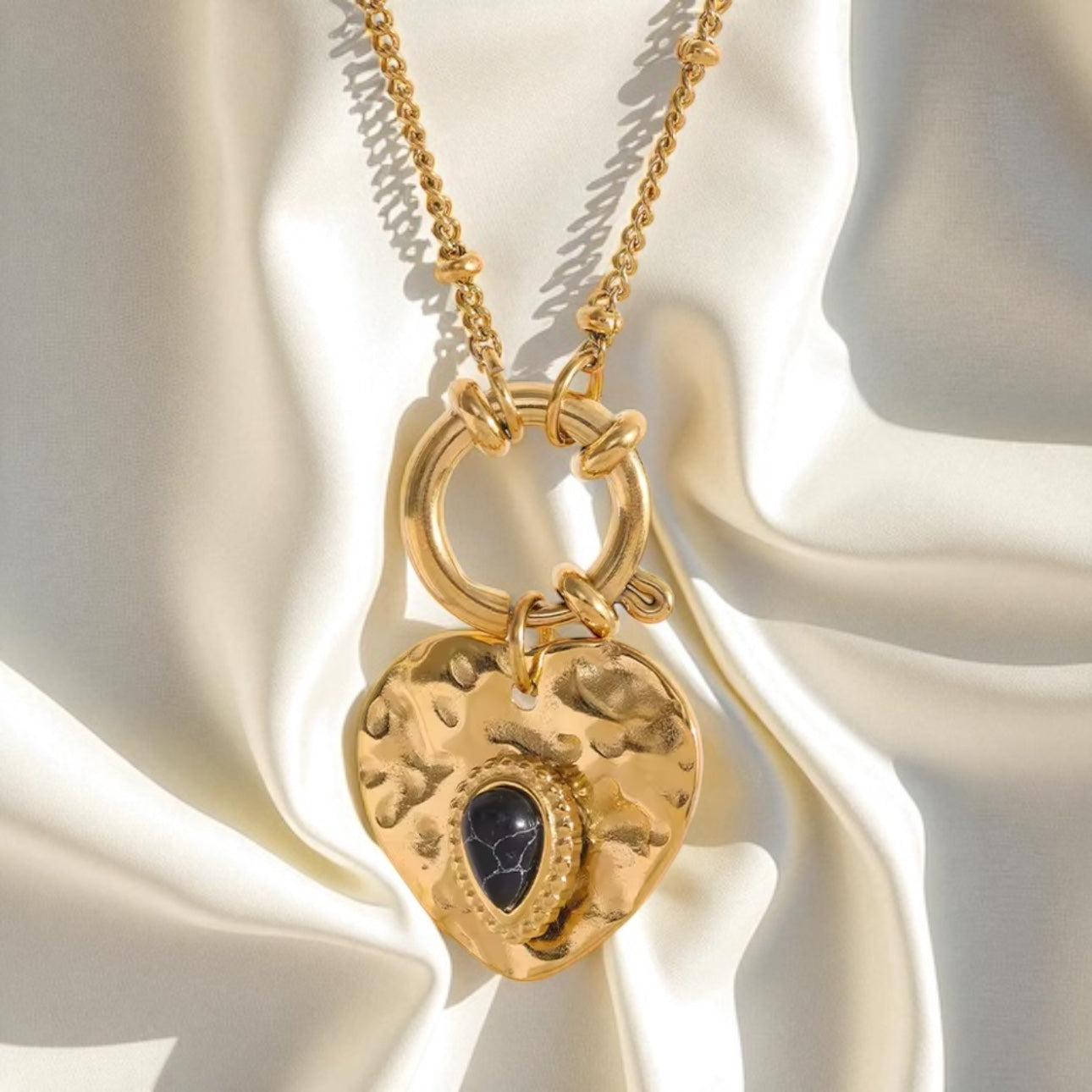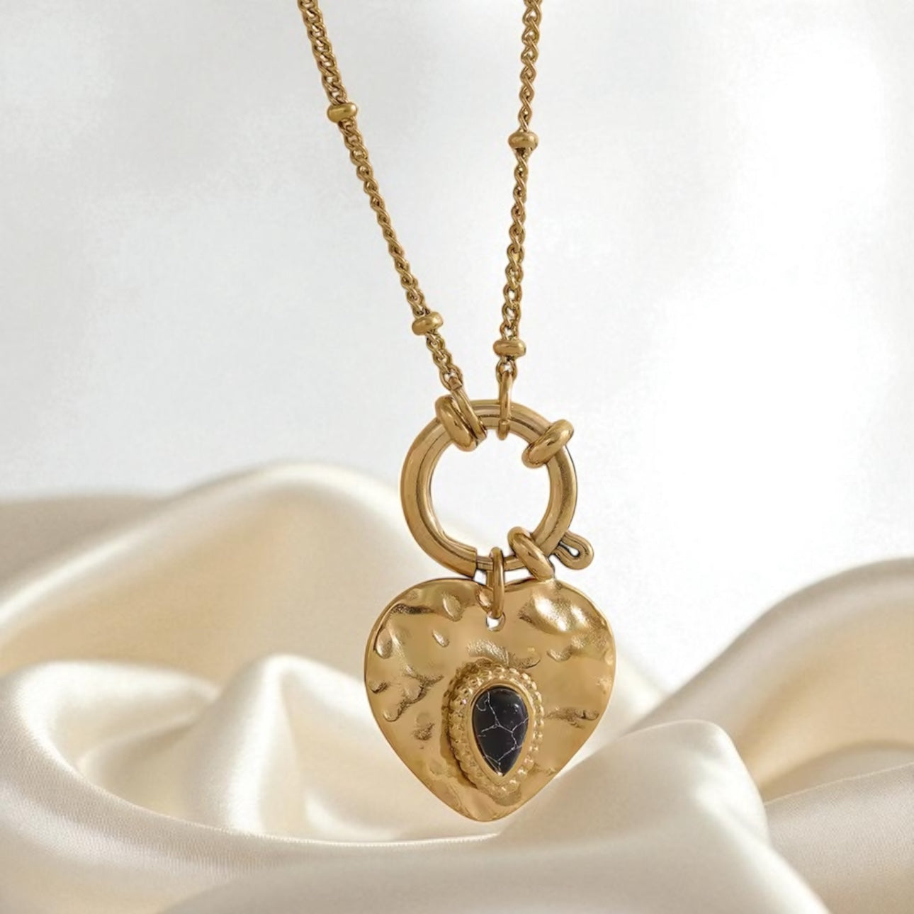 Onyx Heart Vintage Necklace – Bold Romance Meets Classic Edge