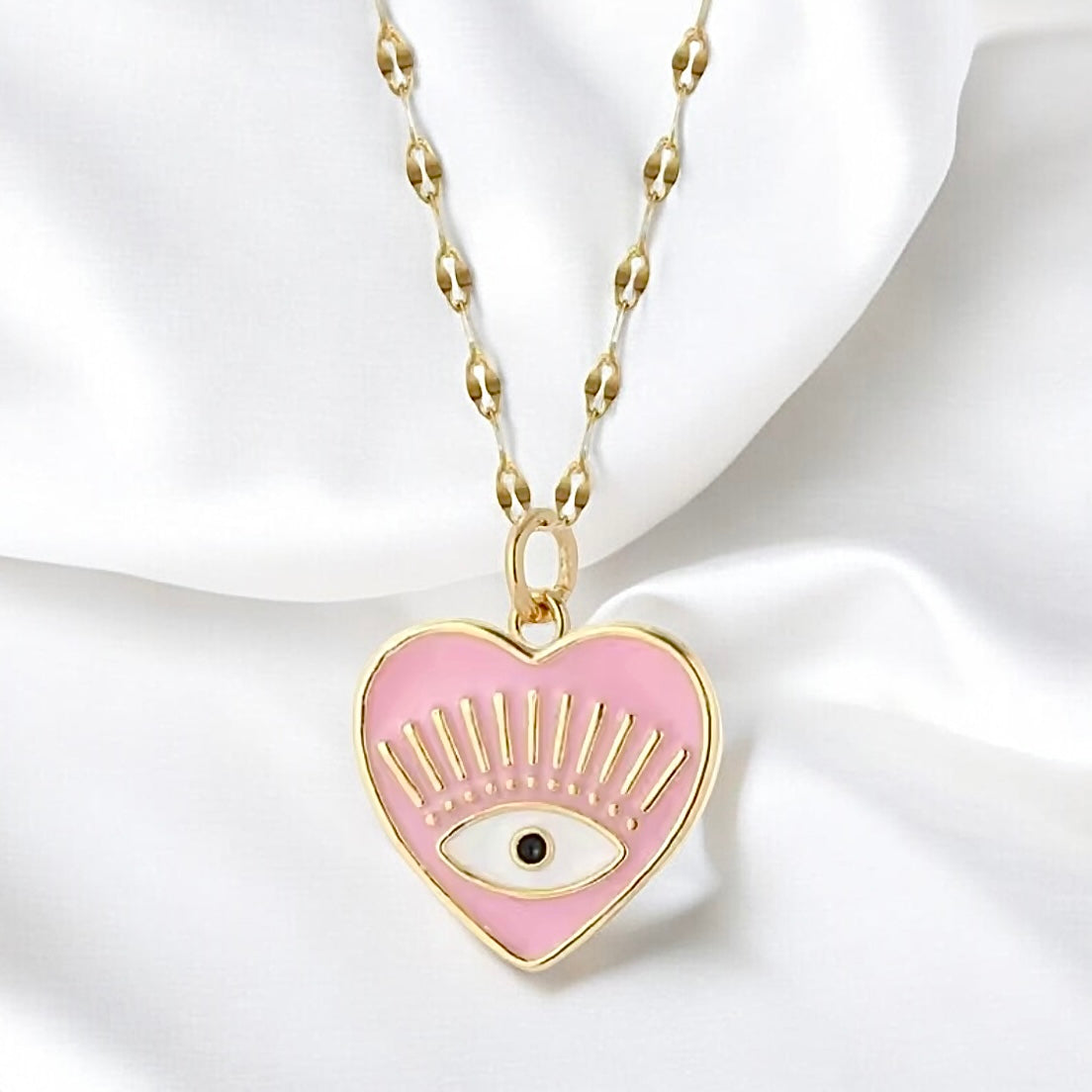 The Evil Eye Symbol is believed to protect the wearer from harm caused by jealousy or envy from others. It is a popular symbol in many cultures and is often worn as jewelry for its protective properties. This stylish necklace is the perfect piece to jazz up any outfit!