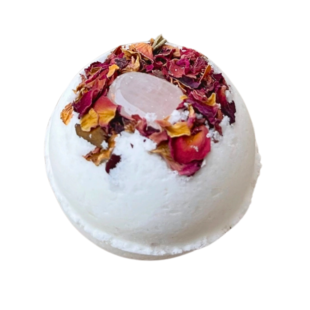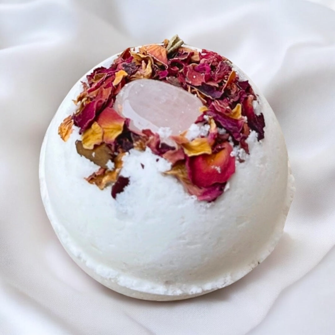 Rose Quartz & Rose Crystal-Infused Bath Bomb | Love, Self Love & Emotional Healing