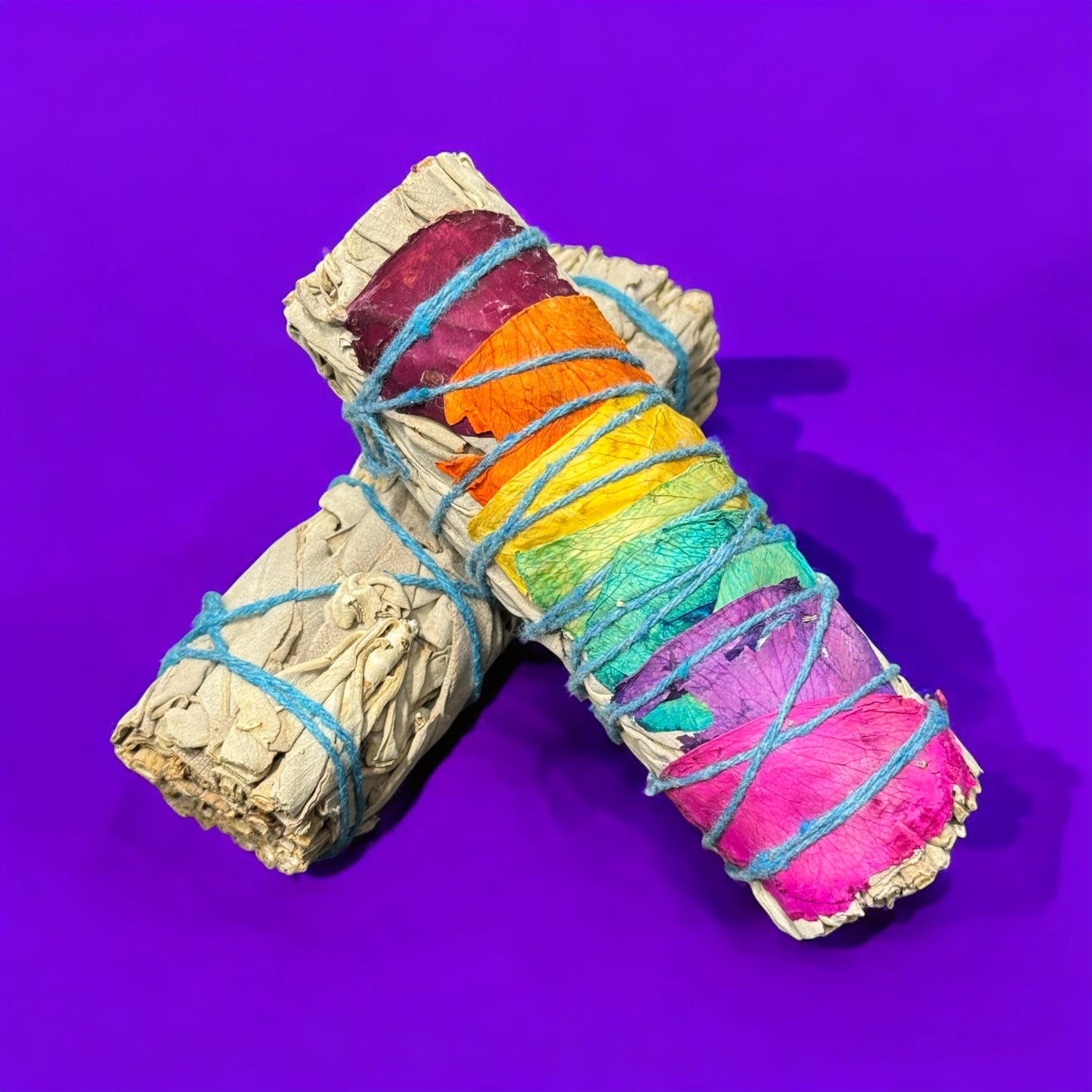 - This pack comes with 1 seven chakras rose & sage smudge stick AND 1 white sage smudge stick