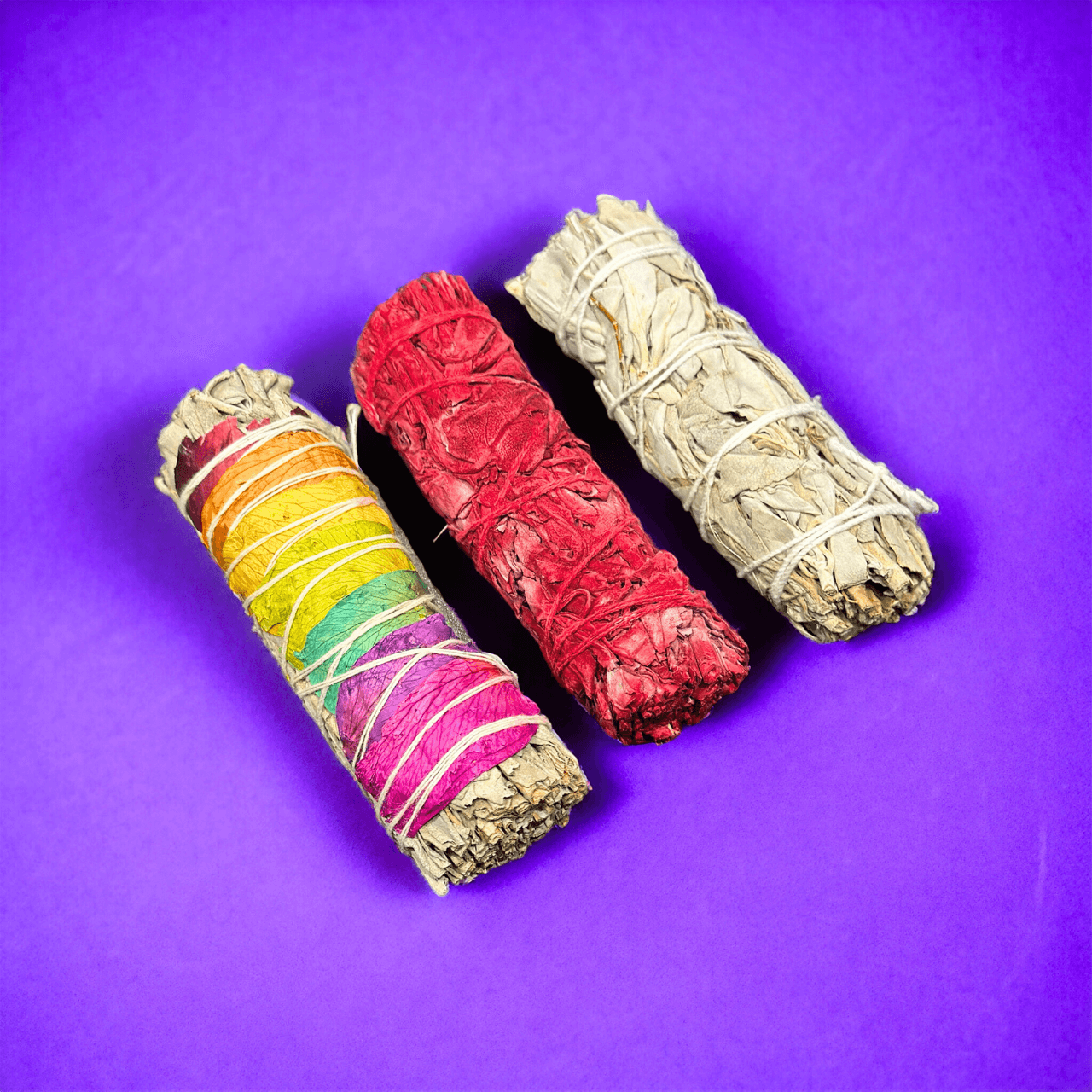 - This pack comes with 1 seven chakra rose & sage smudge stick AND 1 white sage smudge stick AND 1 Dragon's Blood Sage