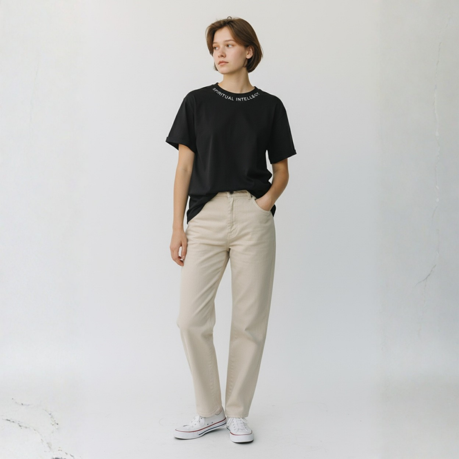 The Soulology.club Spiritual Intellect T-Shirt is made for those who balance intuition with awareness, where insight meets intelligence. This black tee features a clean white affirmation-style print around the collar, a subtle nod to inner knowing and conscious thought.