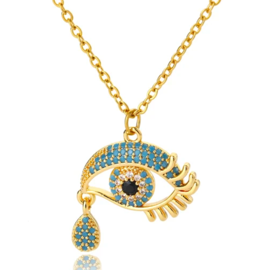 This stylish pendant features a Cubic Zircon in and around the Evil Eye symbol, an age-old symbol of protection. This dainty necklace is lovely on its own or layers well with other necklaces. Wear this piece as a statement for any occasion.