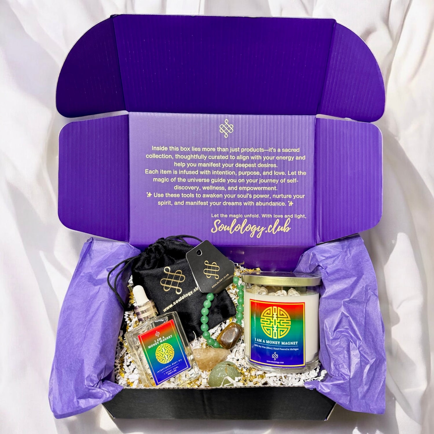 Wealth is an energy—align yourself with it. The Fortune & Flow Box is a high-vibrational manifestation set designed to attract financial success, abundance, and prosperity. Whether you’re looking to boost your income, grow your business, or step into an abundant mindset, this box will help you unlock the flow of wealth and opportunity into your life.