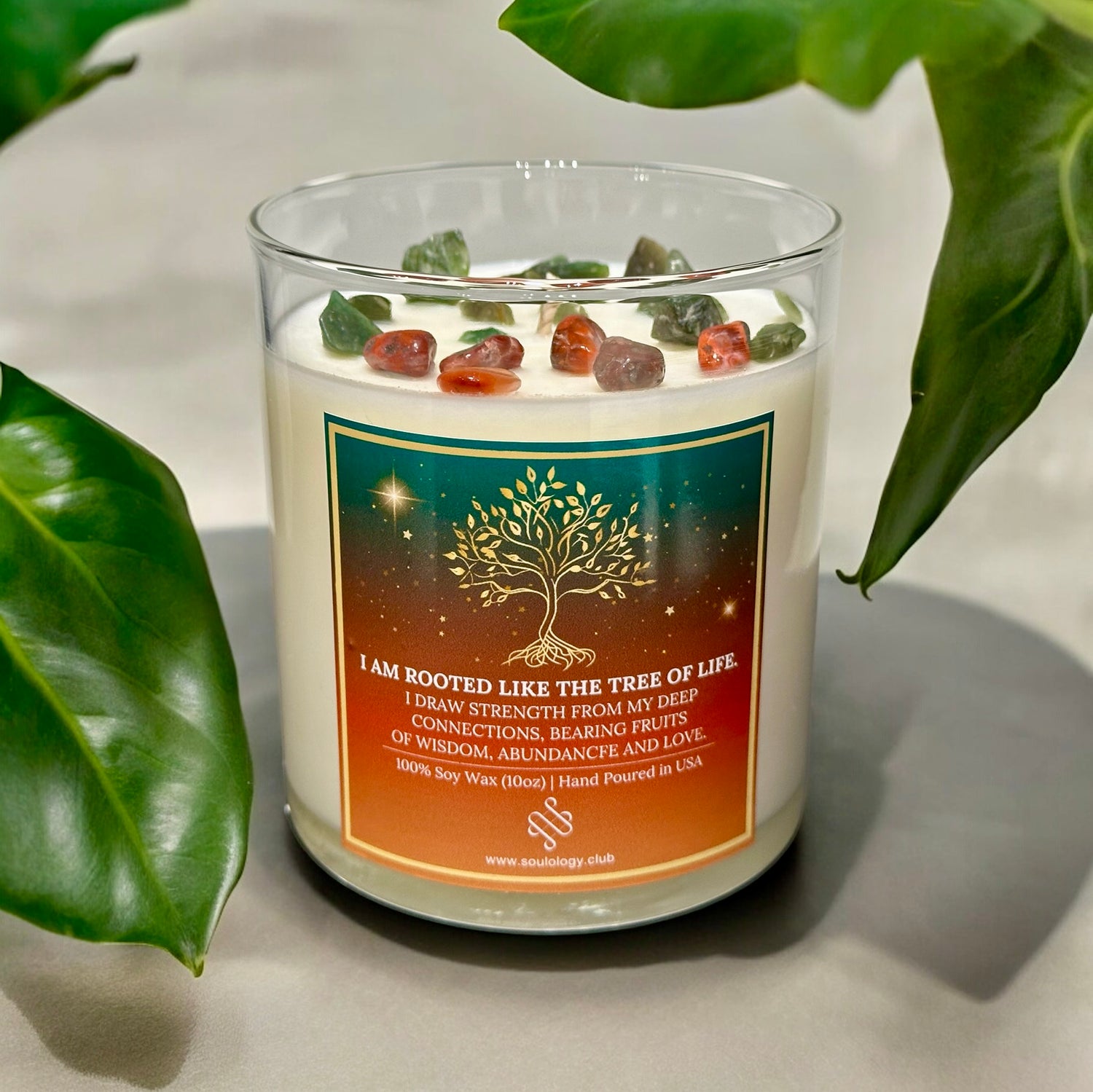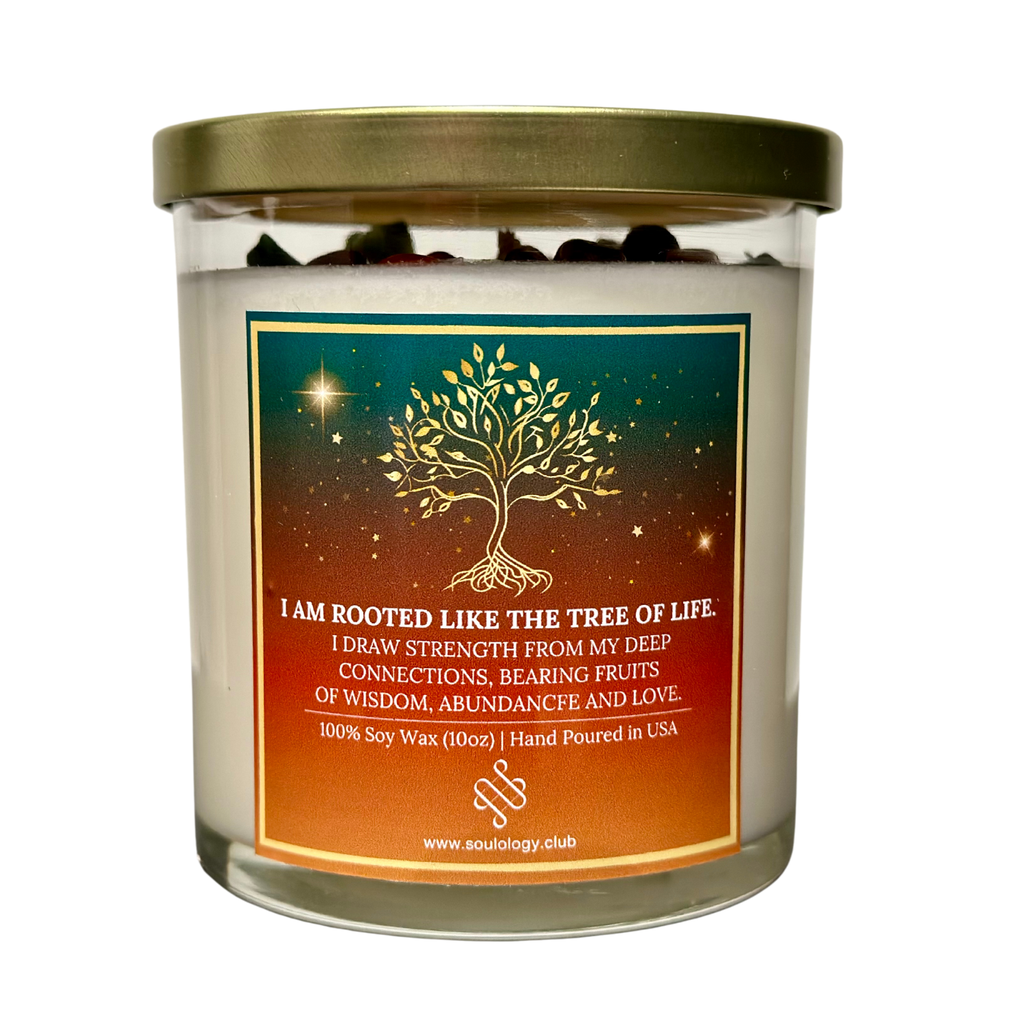 Illuminate your space, uplift your spirit, and embrace the abundance of the universe with our Tree of Life Affirmation Candle. Let its radiant energy guide you towards growth, harmony, and fulfillment.